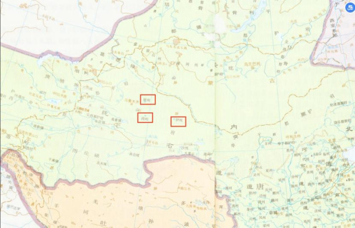 依669年唐朝地图标注的“三州”位置。来源/《简明中国历史地图集》
